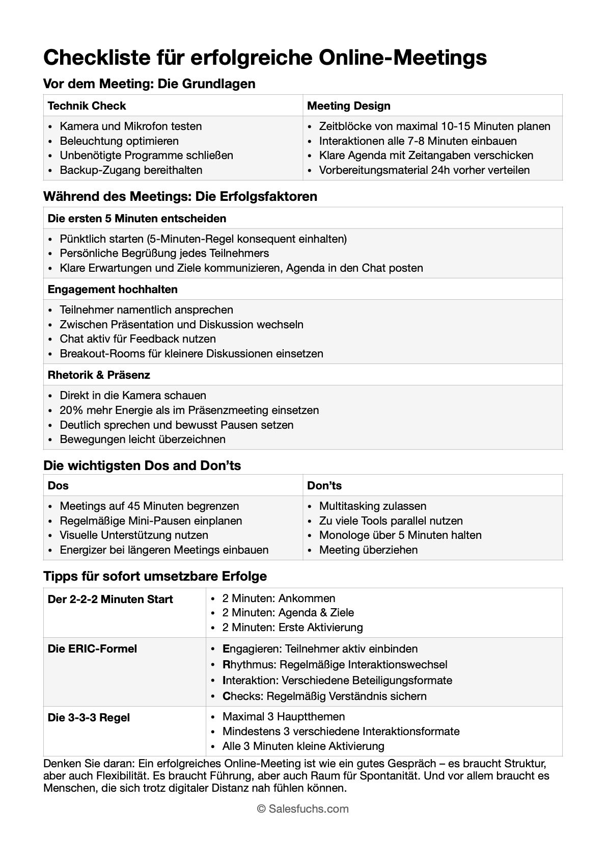 In nachfolgendem Cheat Sheet habe ich auf einer Seite die wichtigsten Tipps für erfolgreiche Meetings zusammengefasst. Laden Sie sich diese herunter, drucken diese aus und fangen sie sofort an Ihre Meetings zu verbessern. Viel Erfolg!